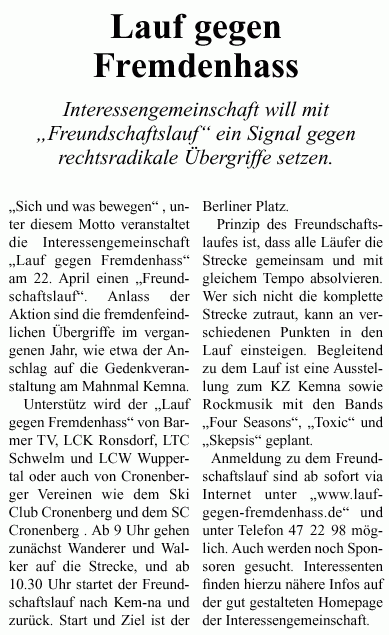 WZ Westdeutsche Zeitung, 09.04.2001: